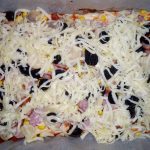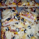 Cam asa am facut eu dupa ce a comandat sotul o pizza asemanatoare cu o foaie de ceapa mica si ofilita (cateva felioare de salam, un blat subtire-subtire si niste cascaval aruncat pe acolo). Cand am vazut cum arata am dat fuga la magazin si mi-am luat tot ce aveam nevoie si…asta a iesit